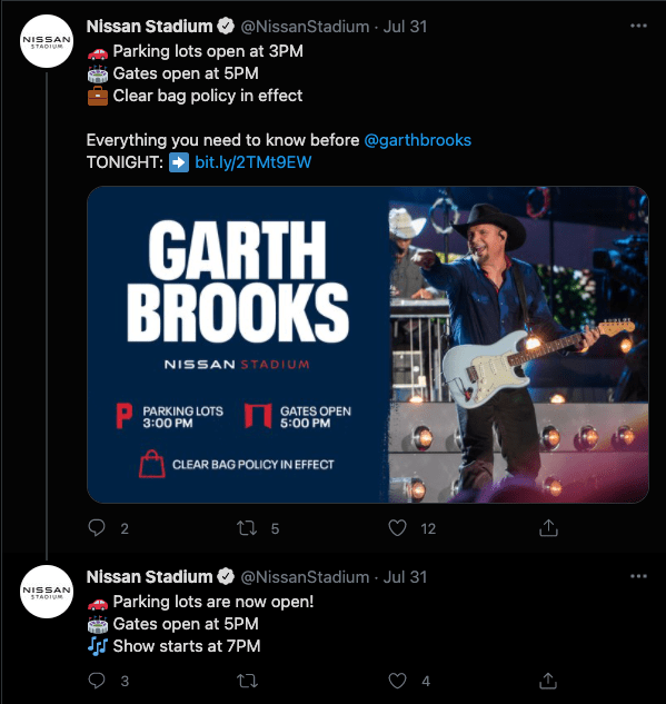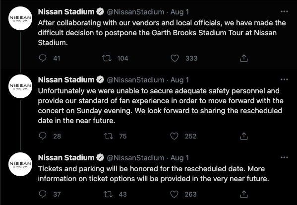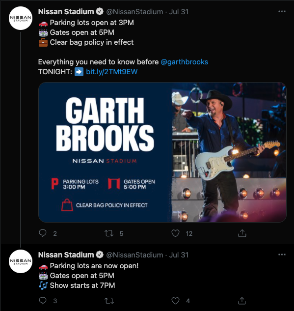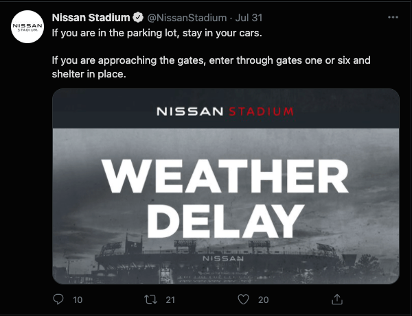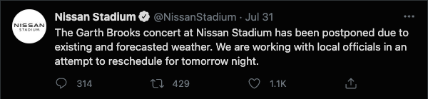 Nissan Stadium keep people informed leading up to the concert, during the delay, and after with the final decision to postpone. They did this across all social media platforms, but it was from Twitter that most people received updates. Why is that?