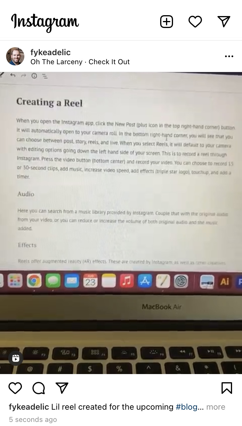 Reels are found in the Explore area (bottom center icon with a play triangle) in Instagram. It is a wonderful way to find new accounts to follow. And, much like TikTok, you can pass time easily by watching what others have created. I don’t claim to be an expert at reels or the best at them, but here is one I quickly put together for this blog.